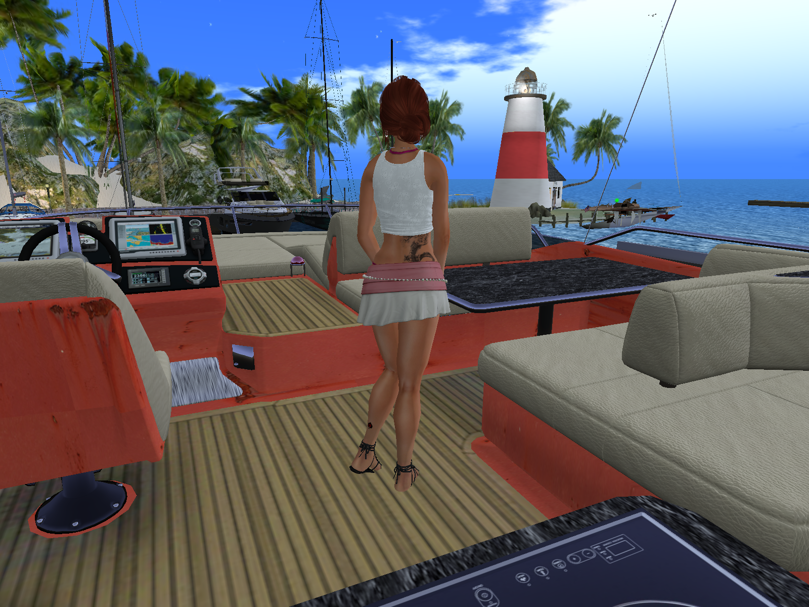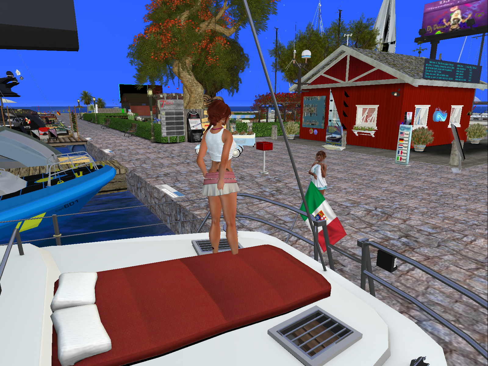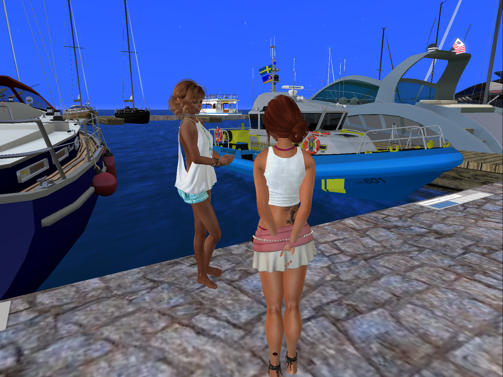 I tried to argue with her for a few minutes without any success. She was stubborn and did not want me to board any boat without an official invitation from one of the owner. Well, I definitely feel it is a bit a pity, but I could not fight it, it was a fact: on this sim it seems people are really not happy to have visitors on their boat. So I bent to the rule. There was no point staying here, she had a thorough look onto me all the time I stayed … so I left for another marina.