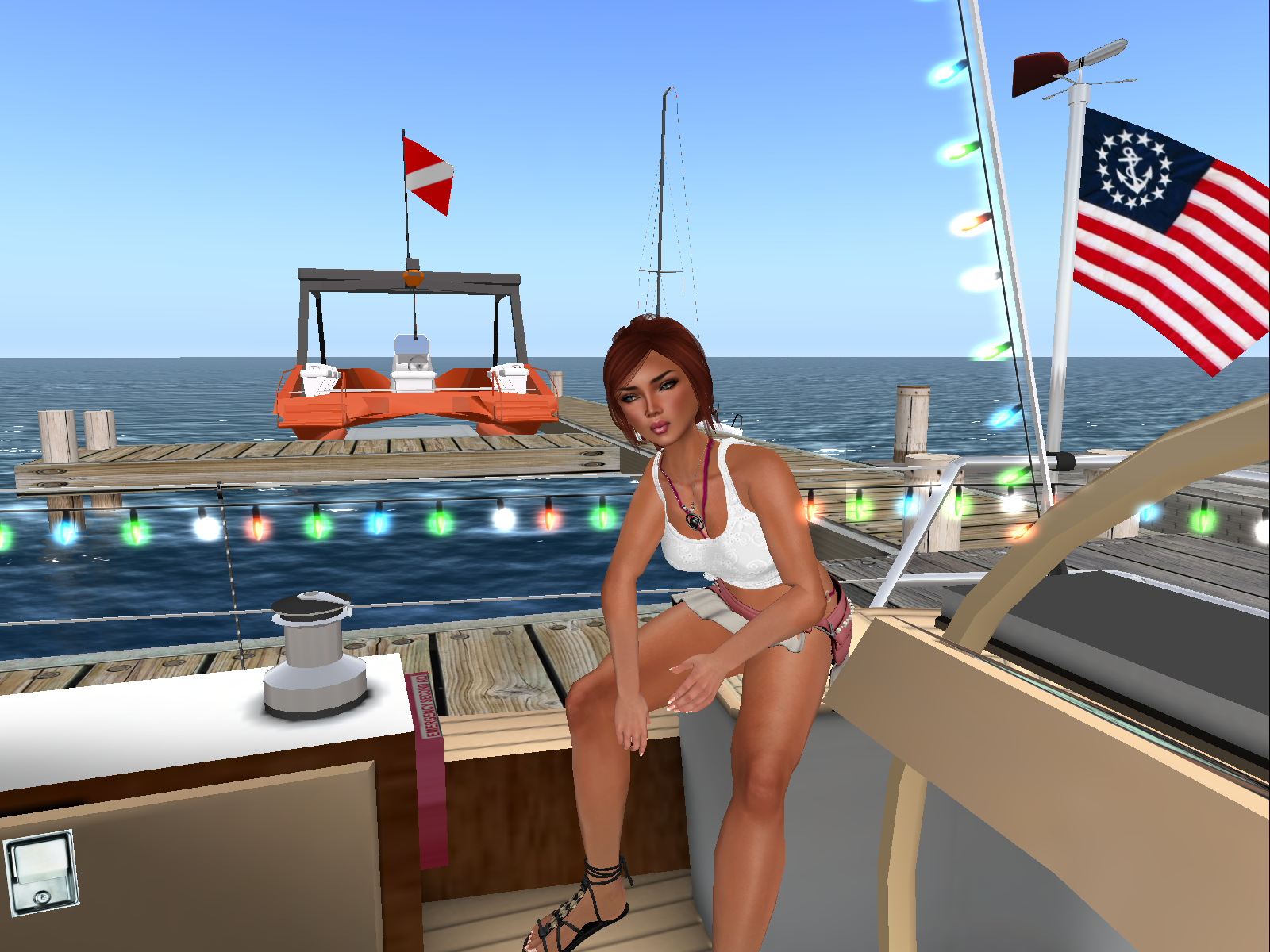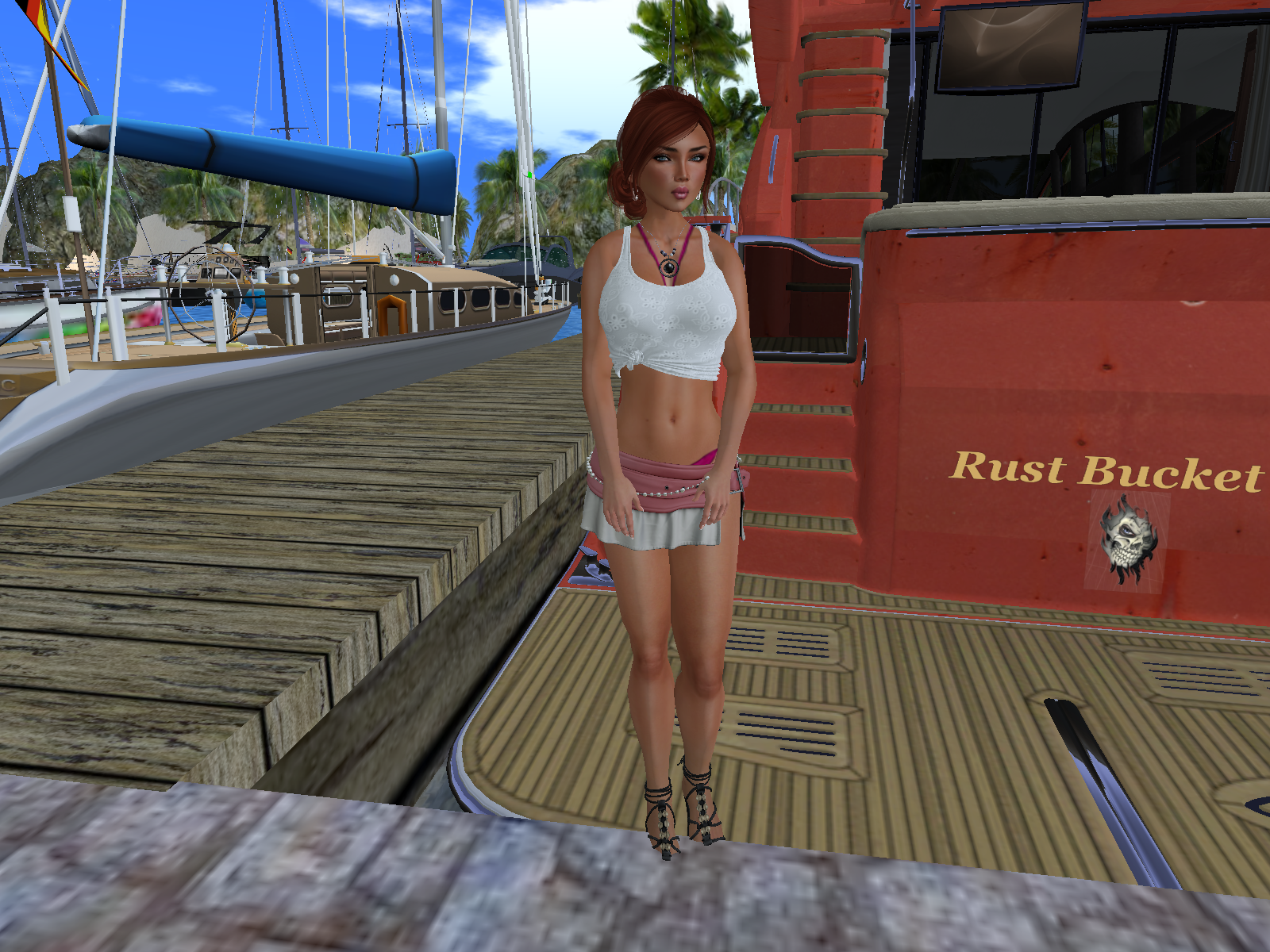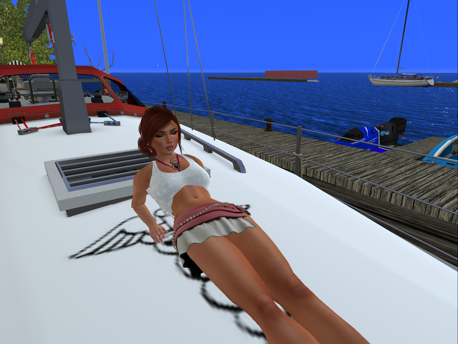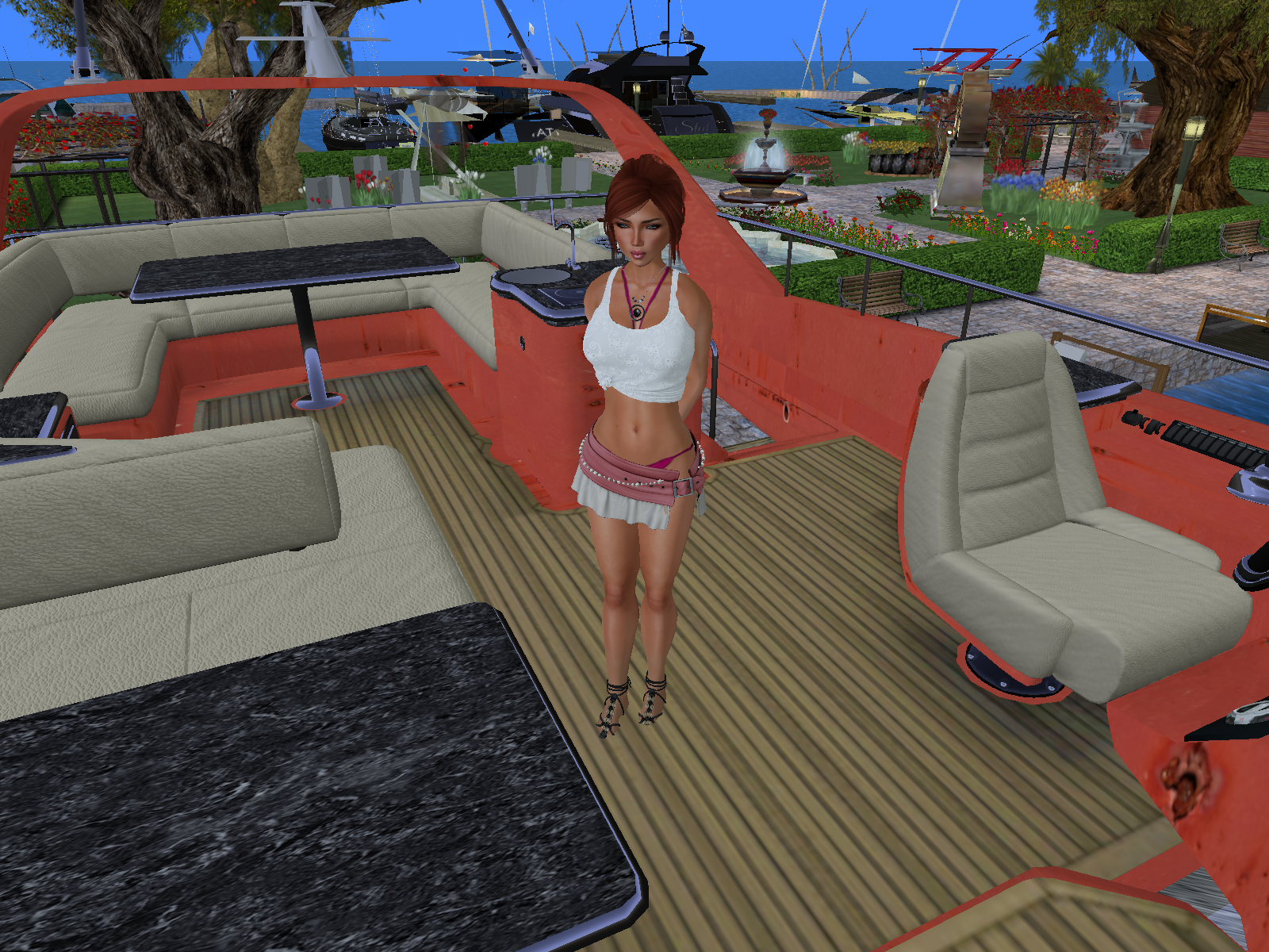 I tried to argue with her for a few minutes without any success. She was stubborn and did not want me to board any boat without an official invitation from one of the owner. Well, I definitely feel it is a bit a pity, but I could not fight it, it was a fact: on this sim it seems people are really not happy to have visitors on their boat. So I bent to the rule. There was no point staying here, she had a thorough look onto me all the time I stayed … so I left for another marina.
